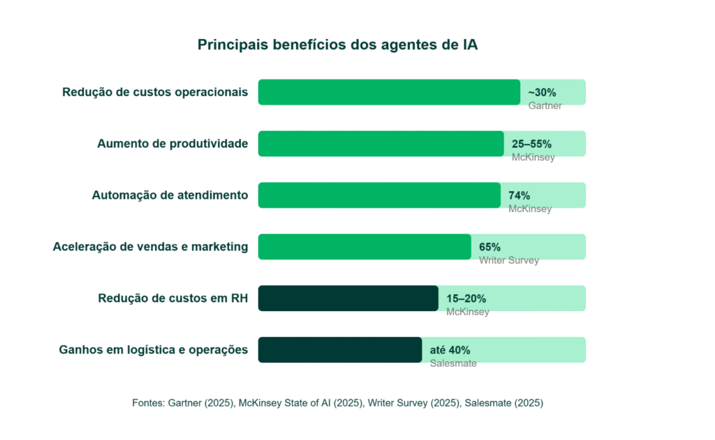 Para quem tem um negócio, seja pequeno, médio ou grande, os agentes de IA representam uma oportunidade real de competir em um nível que antes era acessível apenas para grandes empresas com equipes enormes. Veja os benefícios mais concretos: